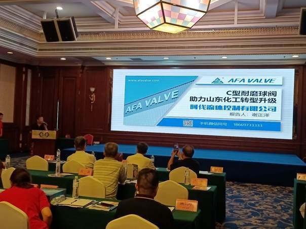 AFA公司董事长谢正泽先生在论坛上作了《金属硬密封C型耐磨球阀助力山东化工转型升级》专题报告,详细介绍了AFA公司金属硬密封C型耐磨球阀研发经历、核心技术优势以及在化工领域广泛的应用业绩,强调了该产品对于化工企业实现生产运行 “安稳长满优”的重要作用。