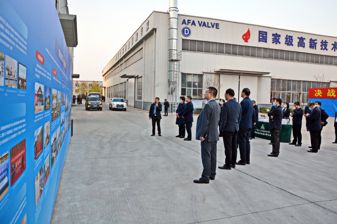2022年11月15日下午,青岛市西海岸新区人大常委会主任佟海燕、工委副书记李金国带领区直有关部门负责同志到壹号娱乐-com流体控制有限公司(以下简称AFA公司)进行现场观摩指导。AFA公司董事长谢正泽和铁山街道办书记祝增建等主要领导共同进行了热情接待。