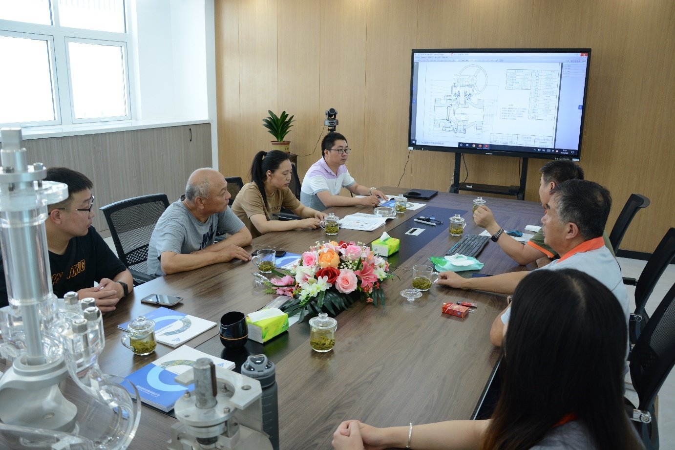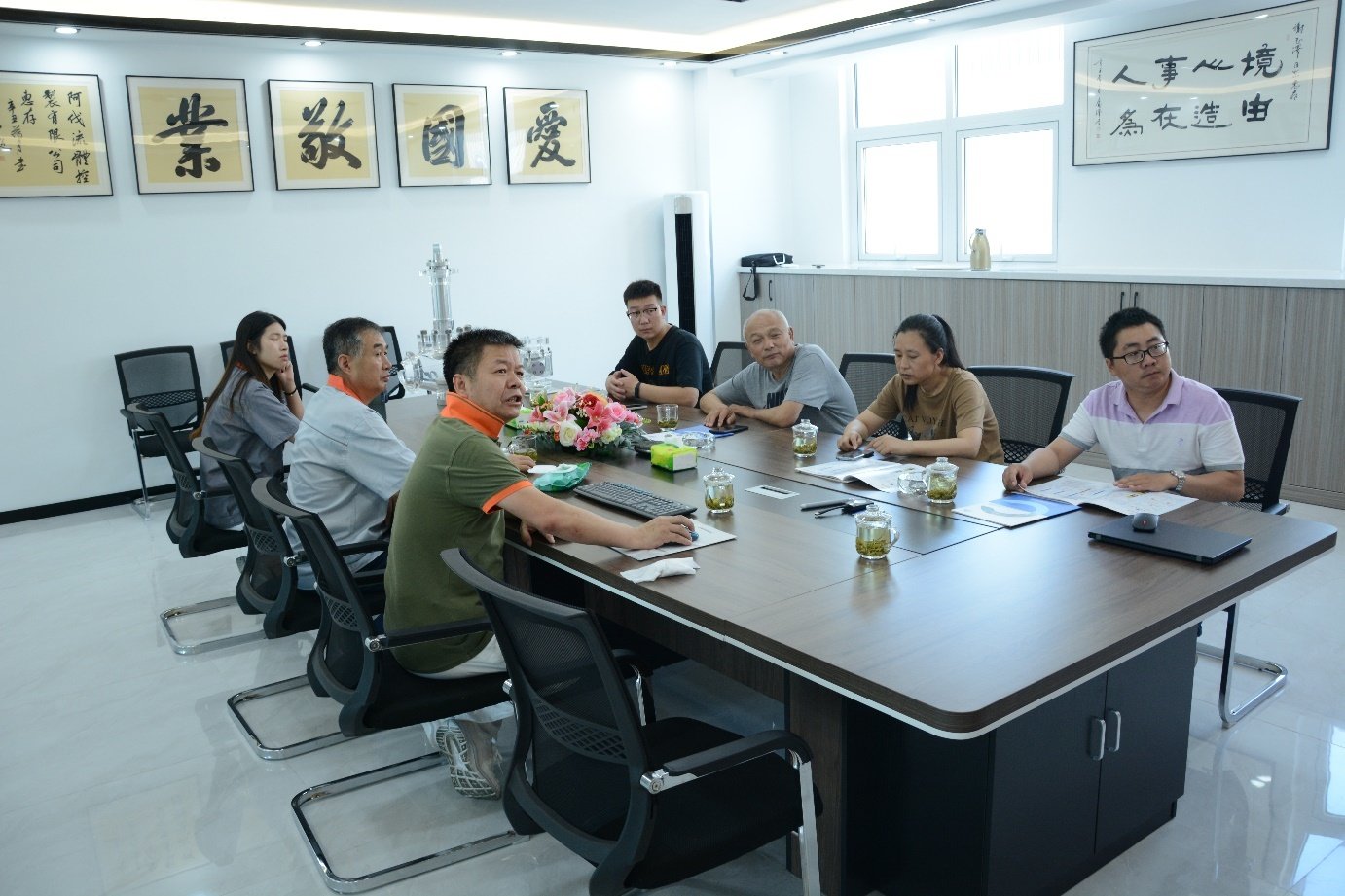 8月2日,通辽建龙制酸有限公司(通辽梅花生物科技有限公司)原料氨装置技术升级改造项目张总一行来到壹号娱乐-com流体控制有限公司(以下简称AFA公司)进行考察调研,AFA公司董事长谢正泽和其他公司领导参加了接待活动,陪同客人到生产车间机加工、球体加工、喷涂、研磨、装配、试压等主要生产工序参观考察,并进行了技术交流座谈。