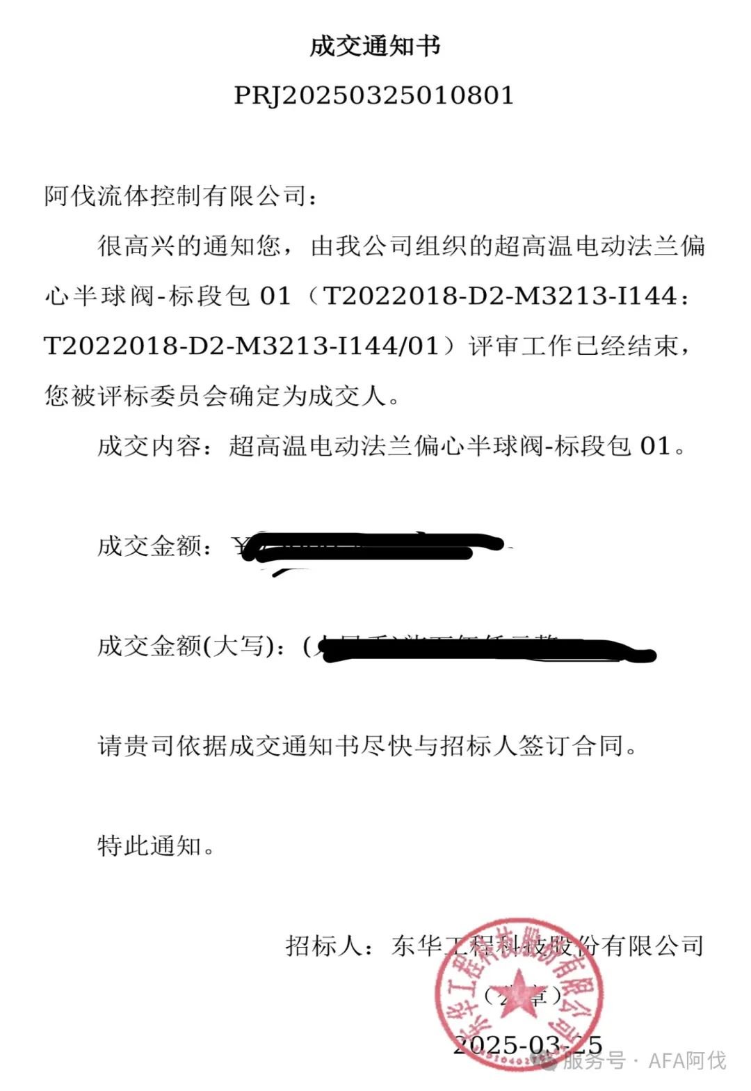 近日,在生物质气化和煤气化用领域传来喜讯——壹号娱乐-com流体控制有限公司(以下简称:AFA公司)凭借领先的技术研发实力与定制化解决方案能力,在东华工程科技股份有限公司(以下简称:东华工程科技)《生物降解材料PBAT全产链关键技术研究与产业化示范项目》(生物质气化中试项目)开发配套设备采购中脱颖而出,独家中标超高温电动顶装式C型耐磨球阀供应订单。此次中标标志着AFA公司在苛刻工况阀门领域的技术突破获得行业高度认可,更为我国生物质气化和煤气化技术攻关提供了关键设备支撑。