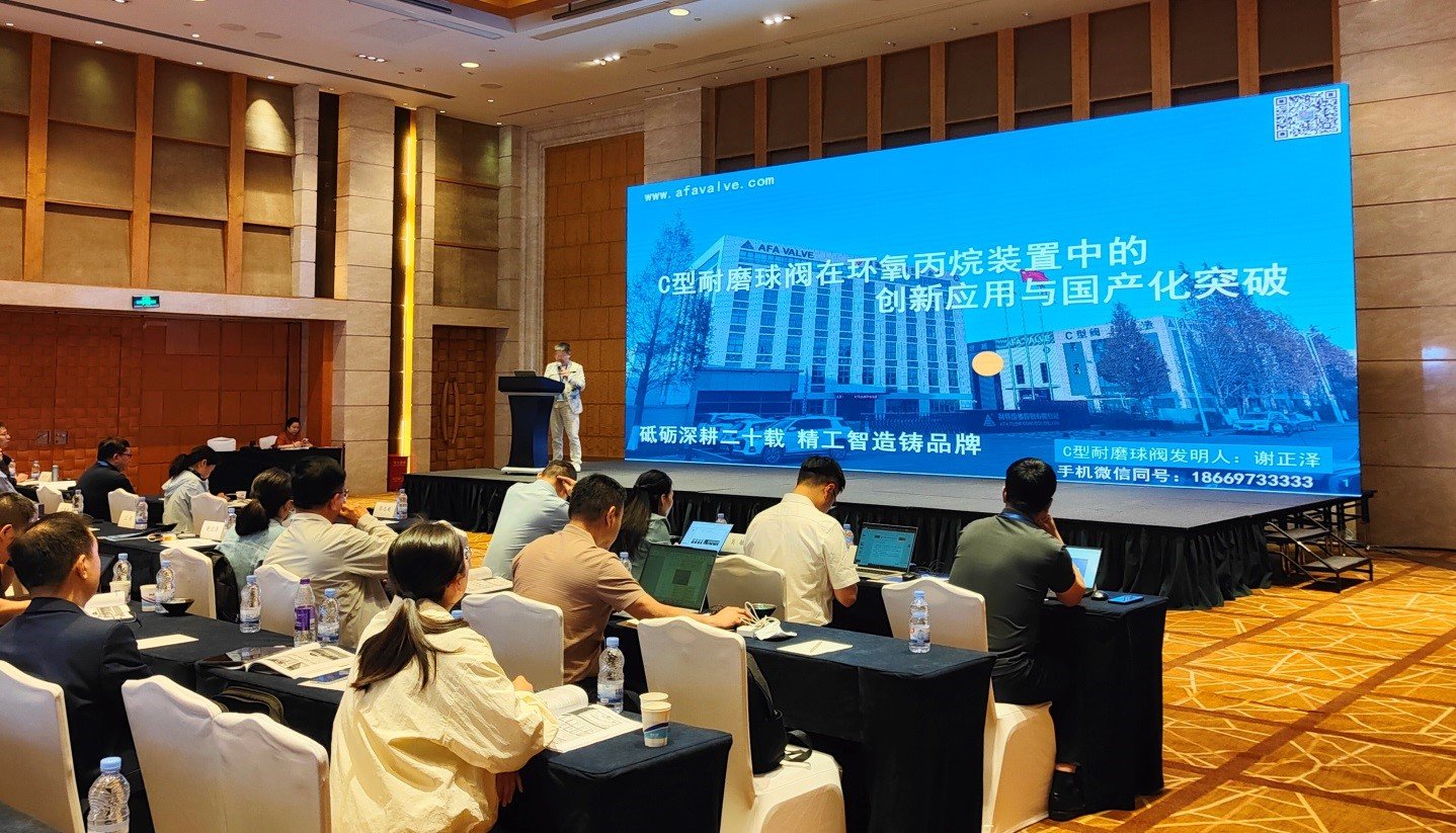 在两大盛会上,AFA公司董事长谢正泽分别作了题为《C型耐磨球阀赋能煤气化装置长效稳定运行》、《C型耐磨球阀在环氧丙烷装置中的创新应用和国产化突破》的主题演讲。谢正泽董事长深入浅出地介绍了C型耐磨球阀的研发历程,从最初的市场需求调研,到研发团队的不懈努力,再到无数次的试验与改进,每一个环节都凝聚着AFA公司对品质和创新的执着追求。同时,他还详细阐述了产品的核心技术优势,C型耐磨球阀融合了多项前沿技术和创新设计理念,在耐磨性能、密封可靠性以及操作灵活性等方面表现卓越。能够有效解决煤气化装置和环氧丙烷装置在运行过程中遇到的阀门磨损、泄漏、积渣、结垢、卡死等一系列难题,顺利实现了高端耐磨球阀的国产化进口替代,为装置的长效稳定运行、降本增效和安全高效生产提供了有力保障。